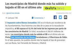 La subida del IBI que sufren los vecinos de Sanse es importante y resulta vergonzoso que se niegue la verdad. La primera prueba la encontramos en el portal inmobiliario de Internet de referencia en España, Idealista.com. Hace unos días confirmaba a San Sebastián de los Reyes como la segunda ciudad donde más ha subido el IBI en toda la Comunidad de Madrid.