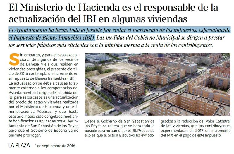 PP Sanse prueba con documentos que el IBI se ha incrementado más de 100 euros en algunos barrios – El portal Idealista.com confirma que Sanse es la segunda ciudad con mayor subida del IBI en la región – El PSOE y sus socios confirmaron que “el Ayuntamiento ha hecho todo lo posible por evitar el incremento de los impuestos” (dando por hecha la subida) en la revista municipal La Plaza
