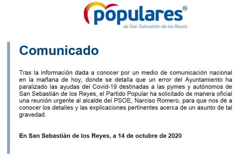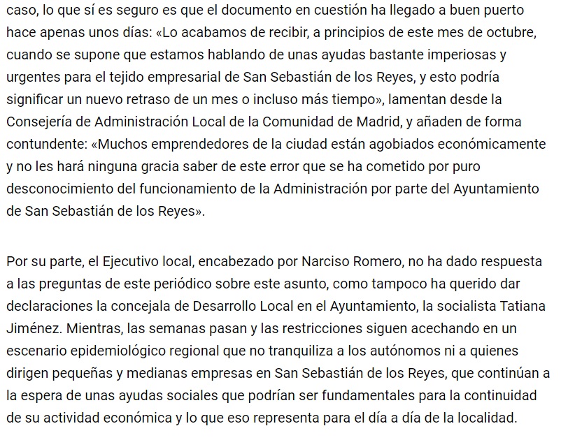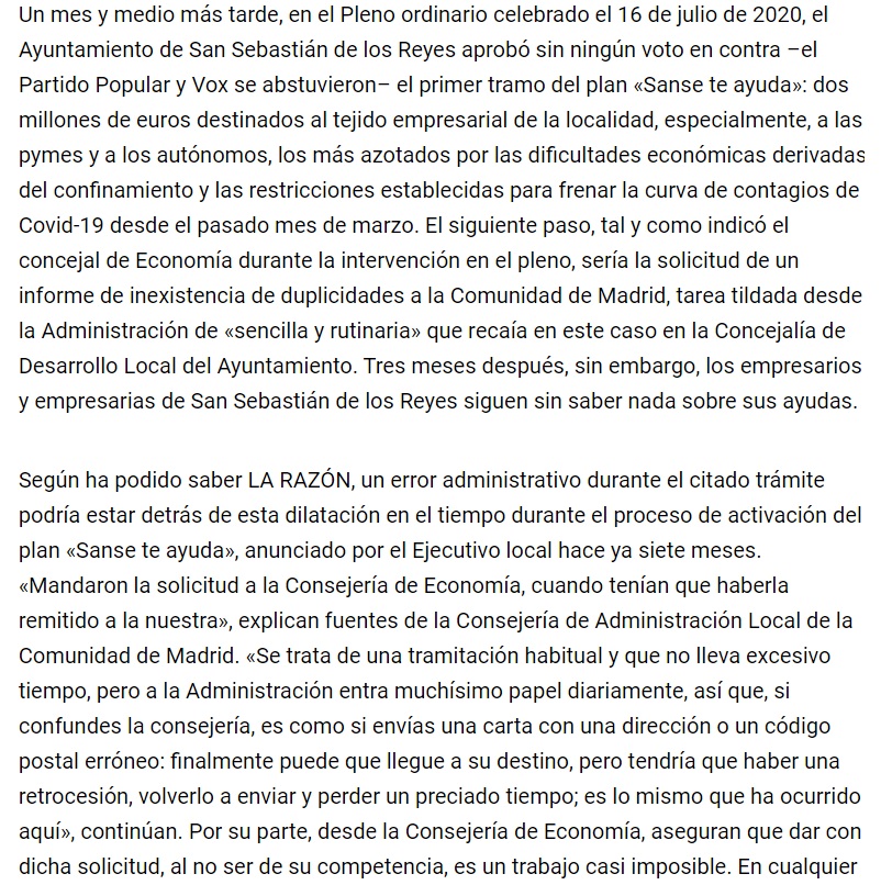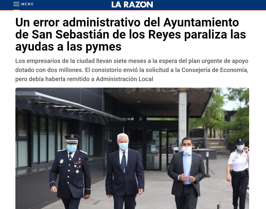 COMUNICADO TRAS LA NOTICIA DE LA RAZÓN: Un error del Ayuntamiento paraliza las ayudas a las pymes por el Covid-19